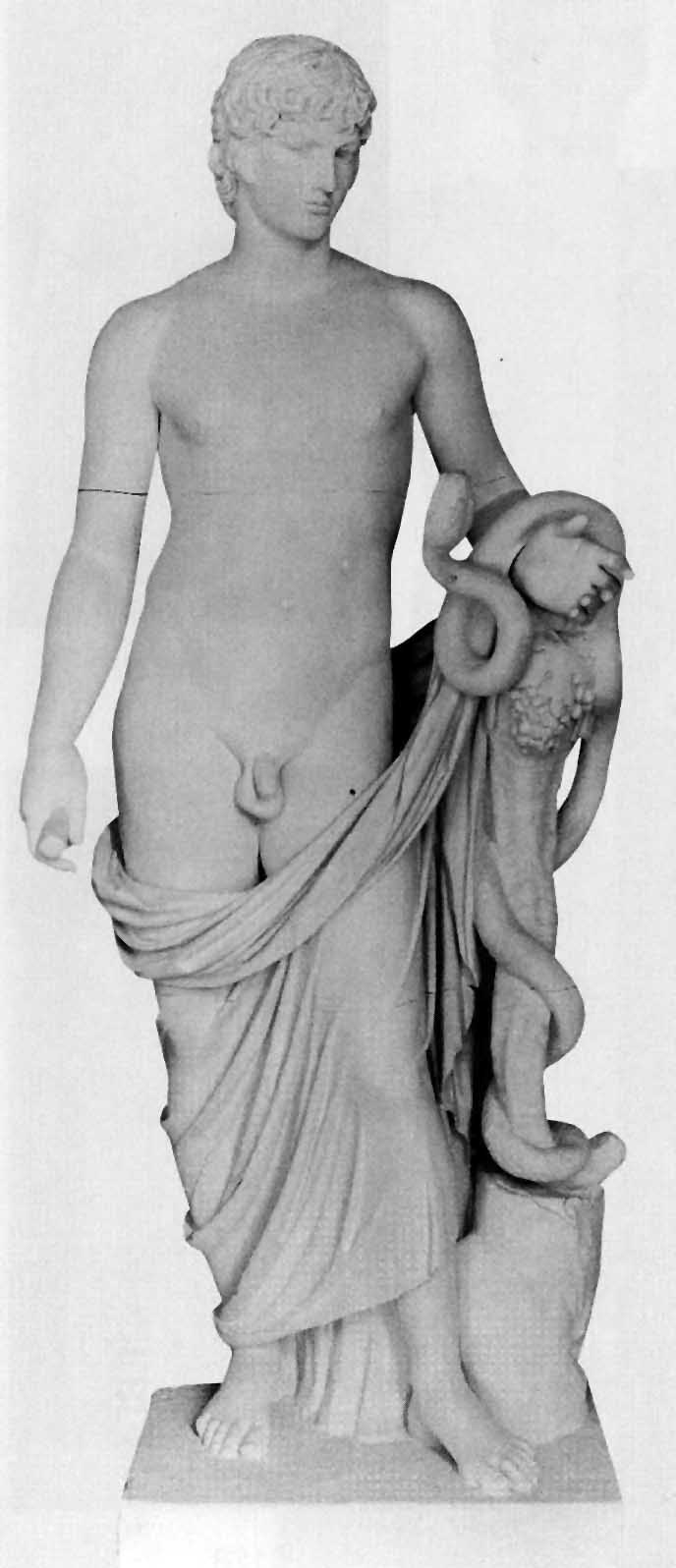 Genius mit Kopf des Antinoos. Höhe 237 cm. Orginal: Berlin, SMB Antikensammlung.